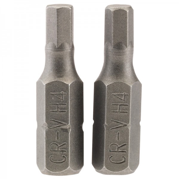 Hexagonal Insert Bit, 4mm, 1/4” Hex, 25mm Long (Pack of 2)