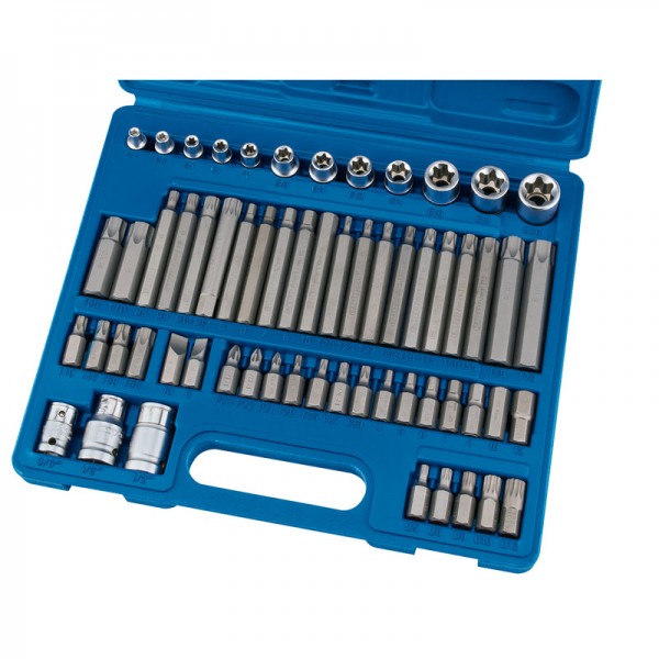 Expert Quality, comprises sockets, 10mm and 14mm insert bits. All are manufactured from the highest quality hardened and tempered steels. Packed in blow mould carrying case and display sleeve.