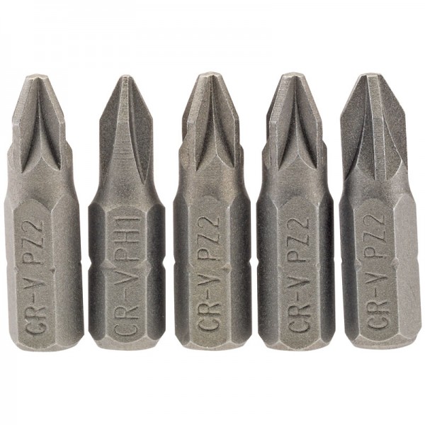 PZ Type Insert Bit, 1/4” Hex, 25mm Long, No.2 (Pack of 5)