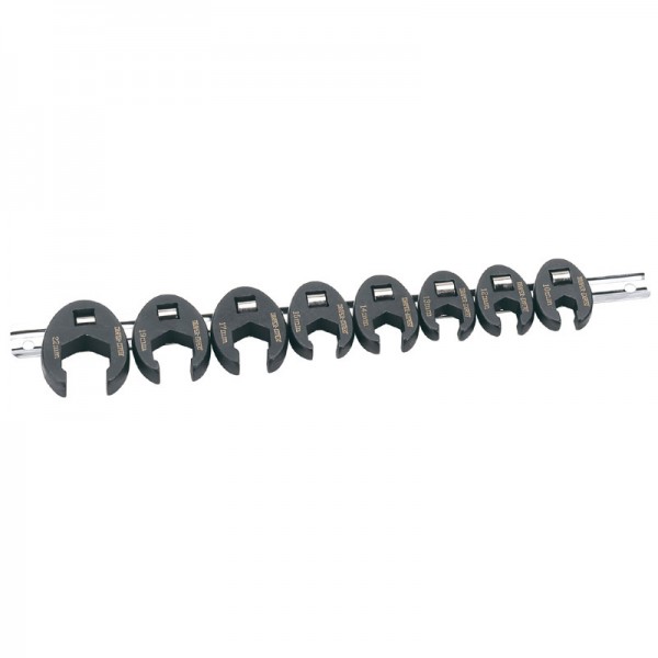 Metric Crow Foot Spanner Set on a Metal Rail, 3/8” Sq. Dr. (8 Piece)