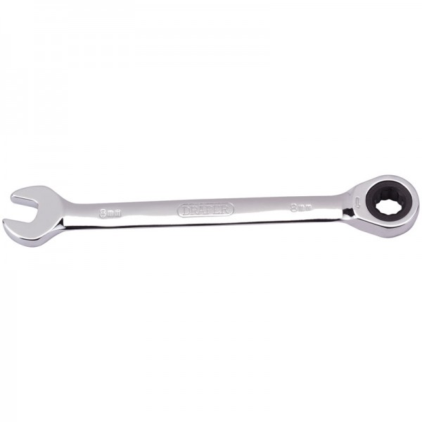 Open end set at 15°. HI-TORQ® ring end manufactured with 72 teeth ratcheting mechanism. Forged from chrome vanadium steel, hardened, tempered, chrome plated.