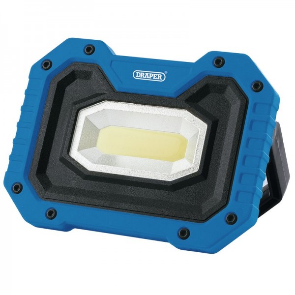 5W COB LED work lamp with high and low light settings. Fitted with a support stand and strong magnet on the rear for hands-free use and furnished with a soft grip finish. Produces a powerful 500 lumens output. Uses 4x AA batteries (Supplied).