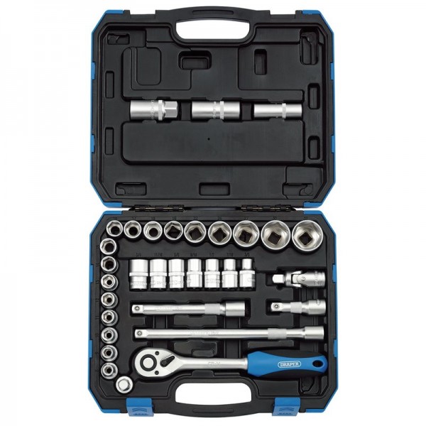 Six point socket made from chrome vanadium steel that’s hardened and tempered with a satin finish. Supplied with a 72 tooth reversible soft grip ratchet and accessories. Packed in a plastic storage case.