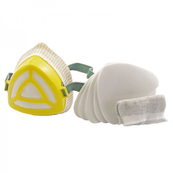 Comprising one mask with five filters and sanitary face cloth. For protection against non toxic dusts and powders. Suitable only to reduce discomfort caused by exposure to coarse non-toxic particles where the concentration of the particles does not exceed the maximum permissible exposure. Display packed.